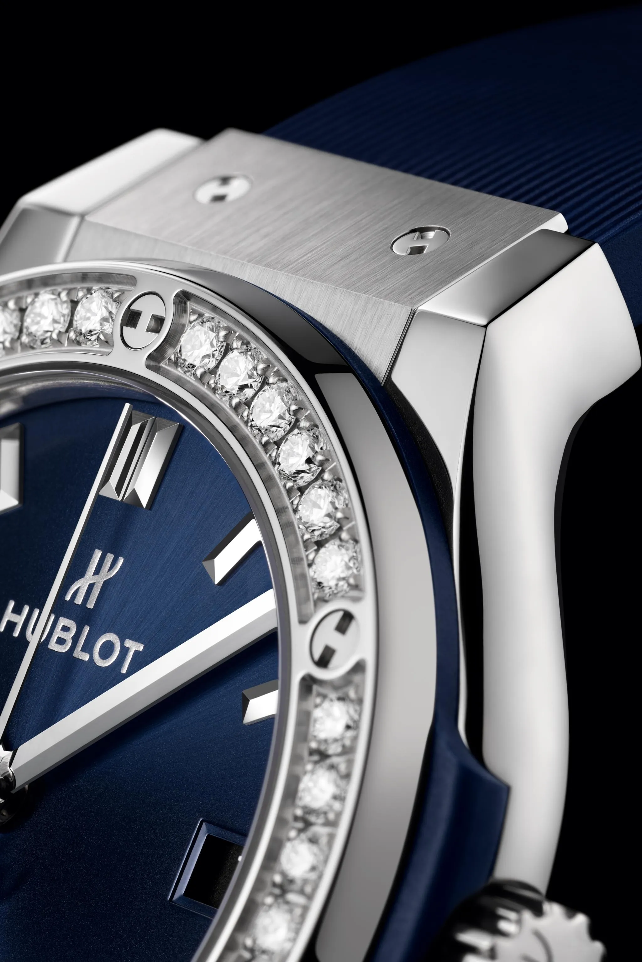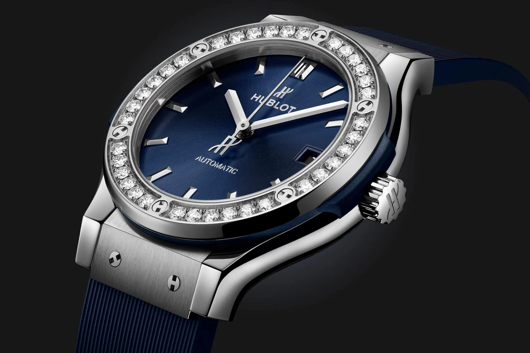 Hublot Classic Fusion Titanium Blue Diamonds – tai amžinos elegancijos, techninės precizikos ir subtilaus spindesio simbolis, sukurtas moteriai, kuri vertina prabangą be pertekliaus.