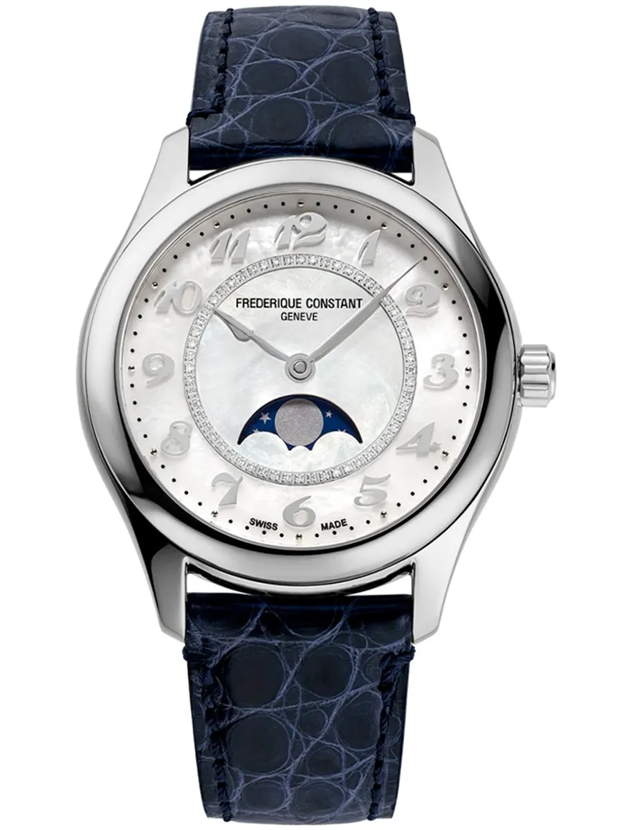 Frederique Constant Classics Ladies Elegance Moonphase FC-331MPWD3B6 – tai moteriškos elegancijos, švelnumo ir šveicariškos precizikos simbolis, sukurtas moteriai, kuri vertina grožį, techninį tobulumą ir laiko prasmę.