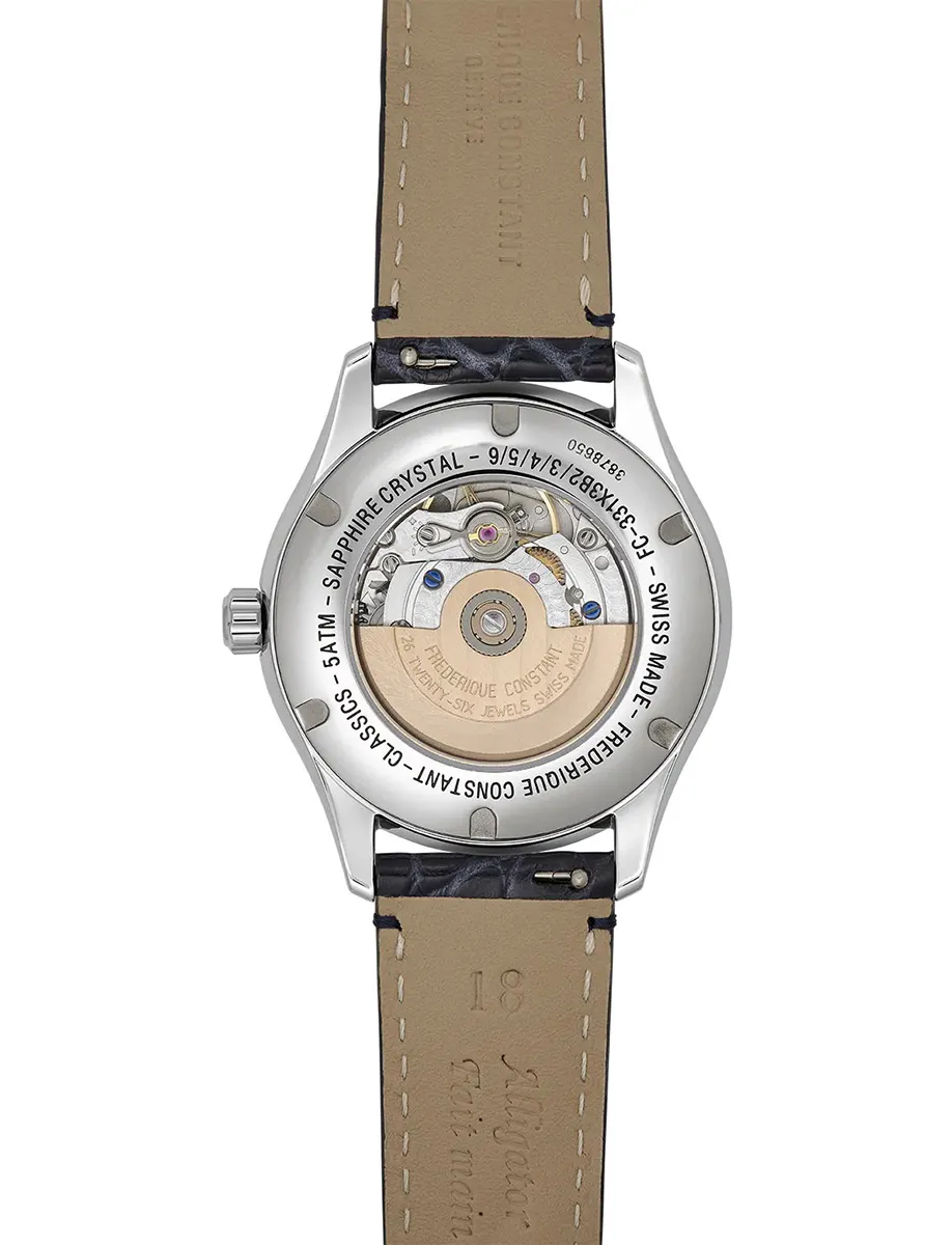 Poliruotas nerūdijančio plieno korpusas ir penkių narelių plieninė apyrankė suteikia išskirtinės prabangos pojūtį, o safyrinis stiklas užtikrina ilgaamžiškumą ir atsparumą įbrėžimams. Viduje veikia automatinis Frederique Constant FC-331 mechanizmas, kuriam būdingas tikslumas ir patikimumas – tikras šveicariškos kokybės pažadas.