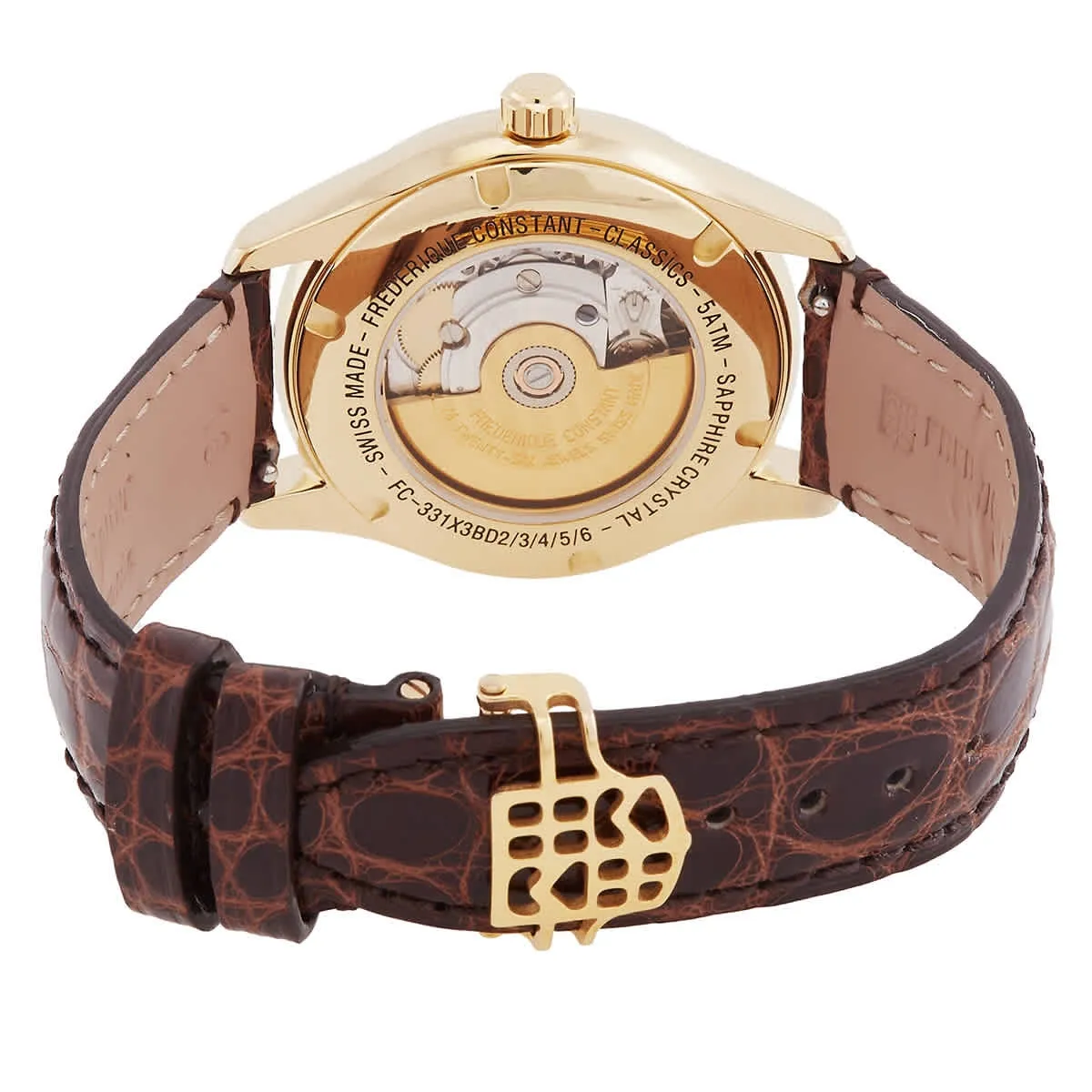 Poliruotas nerūdijančio plieno korpusas ir penkių narelių plieninė apyrankė suteikia išskirtinės prabangos pojūtį, o safyrinis stiklas užtikrina ilgaamžiškumą ir atsparumą įbrėžimams. Viduje veikia automatinis Frederique Constant FC-331 mechanizmas, kuriam būdingas tikslumas ir patikimumas – tikras šveicariškos kokybės pažadas.