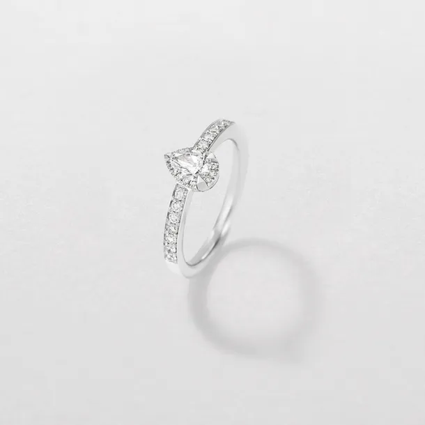 Įspūdingas ir rafinuotas – šis IOLUCE kolekcijos žiedas iš 18 kt balto aukso, puoštas smulkiais deimantais ir ryškiu kriaušės formos centriniu deimantu, tampa tikru prabangos simboliu. Išskirtinė forma ir subtilus spindesys suteikia papuošalui modernios elegancijos, o kruopštus meistriškumas pabrėžia kiekvieną detalę. Tai žiedas, skirtas ypatingoms akimirkoms ir moteriai, kuri mėgsta išsiskirti stiliumi.