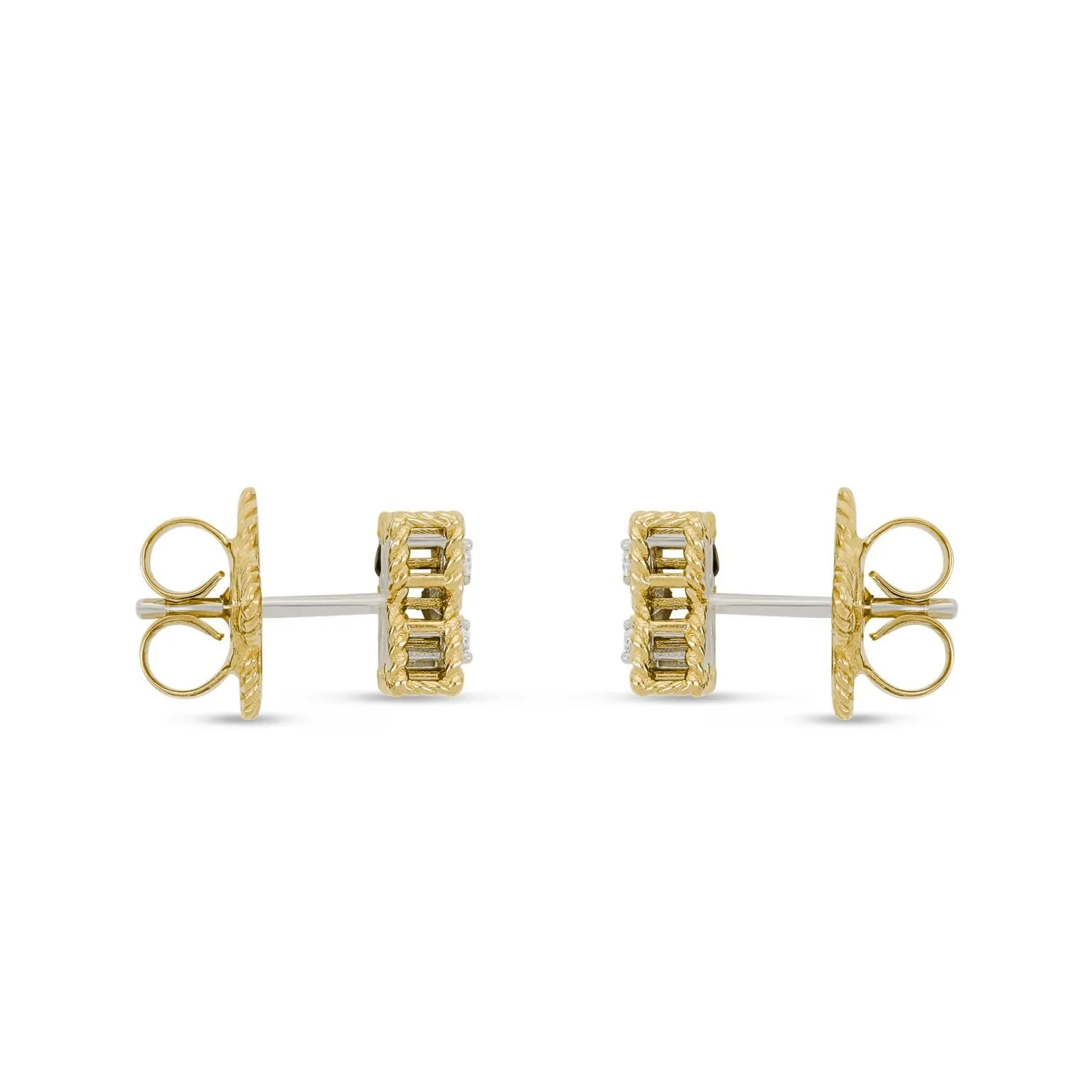 Žėrintys deimantai suteikia spindesio šiems elegantiškiems Roberto Coin Princess Flower kolekcijos auskarams. Sukurti iš 18 karatų aukso, jie puošti romantišku gėlių motyvu – subtilios prabangos ir moteriškumo simboliu. Modelis prieinamas rožinio, balto ir geltono aukso versijose, todėl kiekviena moteris gali pasirinkti labiausiai jos stilių atitinkančią spalvą. Kruopšti rankų darbo meistrystė paverčia kiekvieną porą unikaliu juvelyrikos kūriniu.