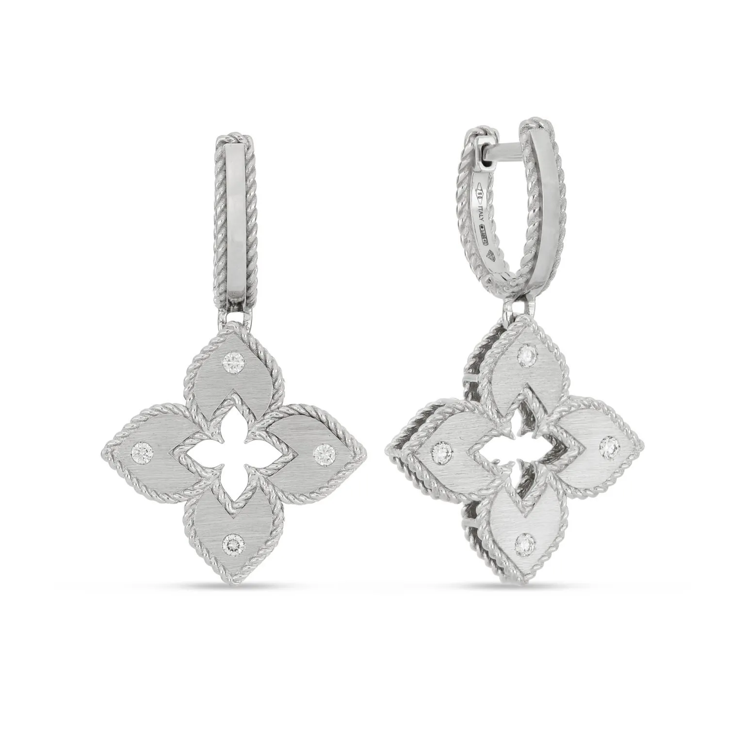 Subtili elegancija ir romantiškas gėlių motyvas atsiskleidžia šiuose Roberto Coin Venetian Princess kolekcijos auskaruose. Pagaminti iš 18 karatų aukso, jie dekoruoti brilianto šlifavimo deimantais, suteikiančiais ypatingo spindesio. Modelis prieinamas balto, geltono ir rožinio aukso versijose, todėl kiekviena moteris gali pasirinkti labiausiai jos stilių atitinkančią spalvą. Kiekviena pora – tai kruopštaus rankų darbo meistrystės rezultatas, užtikrinantis unikalumą ir išskirtinumą.